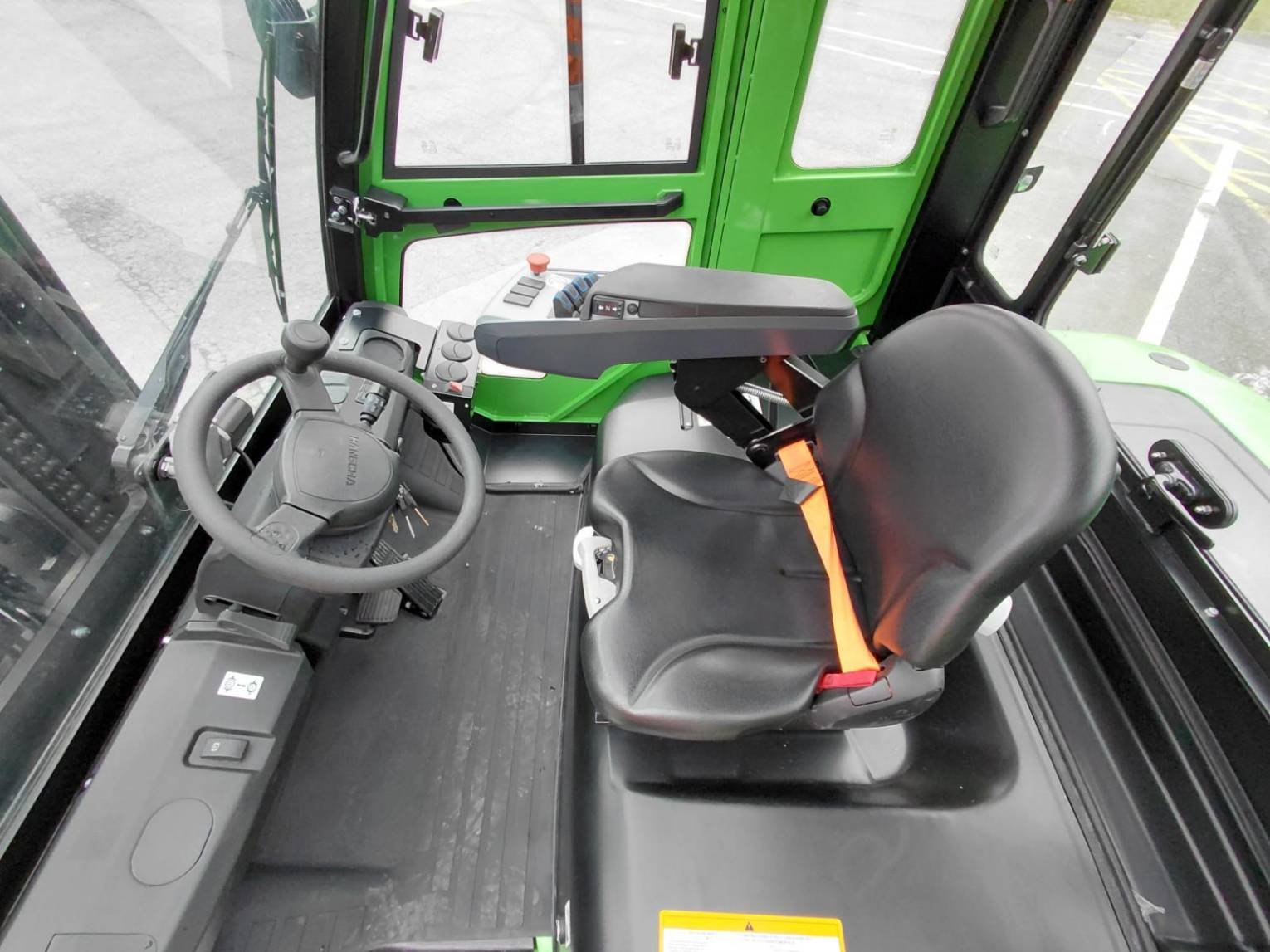 | Équipements | Cabine, Électrofreins, Chauffage et désembuage, Éclairage de route à LED, Batterie lithium, Dosserêt d'appui de charge, Mini levier, Retroviseur panoramique, Blue spot arrière, Feux de travail arrière, Signal de recul, Feu à éclat, Prise USB, TDL (déplacement latéral), Positionneur de fourches |