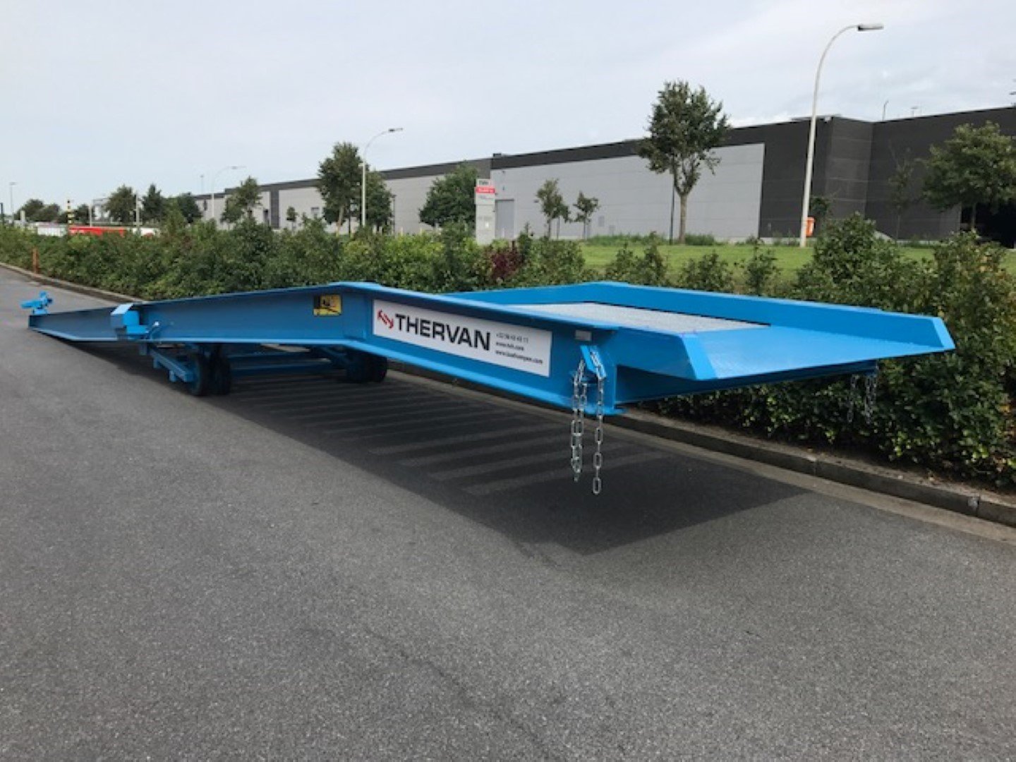 | Détails | capacité 10 000kg Longueur 12m Plateforme horizontale 2.52m Largeur totale 2.28mm Largeur totale (pompe incluse) 2.41m Largeur de passage 1.88m Largeur d'entrée 2.12m Plateforme avec grilles antidérapantes galvanisées Réglage en hauteur hydraulique de 90 à 170cm Poids 4 tonnes Conformité CE Commande à pompe manuelle Quatre pneus pleins en caoutchouc Point d'accrochage pour déplacer le pont avec un chariot Sablée contre la rouille Couleur bleu RAL 5015 |
