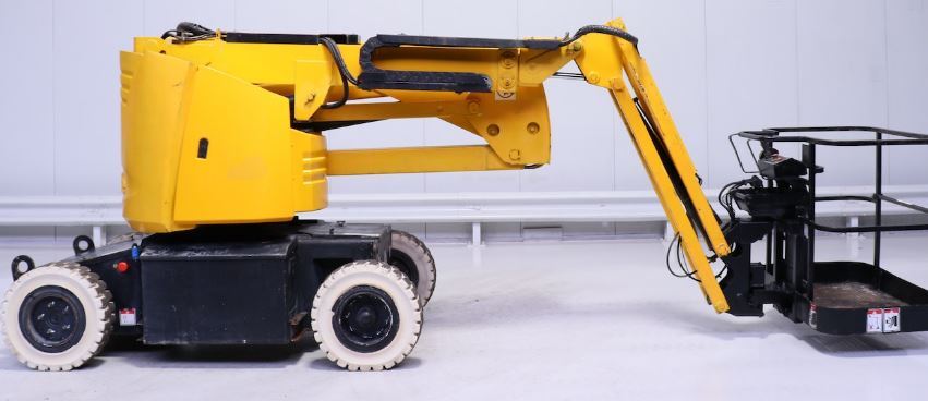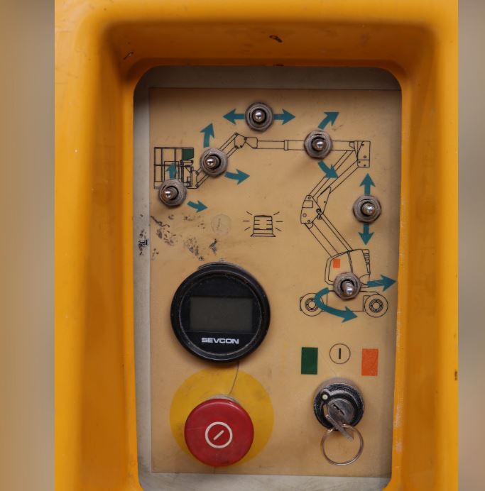 | Détails | Working height 12.0 m Platform height 10.0 m Maximum outreach 6.7 m Up and over clearance 5.25 m Capacity platform 230 kg Fly jib range of motion 140° (+70°/-70°) 140° (+70°/-70°) A Length 5.43 m B Width 1.34 m C Stowed height 1.99 m D Wheelbase 1.80 m E Ground clearance14 cm F x G Platform size 1.2 x 0.8 m Tailswing 0 0 Driving speed 0.55 mph / 2.8 mph 0.9 / 4.5 km/h Outside turning radius 9 ft 3 in 2.85 m Turret rotation 359° Hydraulic platform rotation 180° Energy 48 V (6 x 8 V Batteries 360 Ah) Gradeability 25% Solid tyres 7” x 12” Hydraulic tank 30 l Total weight 5.800 kg |