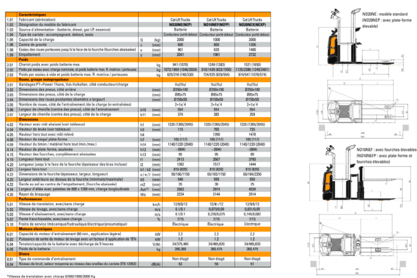 | Hauteur de levée | 0,8 m |